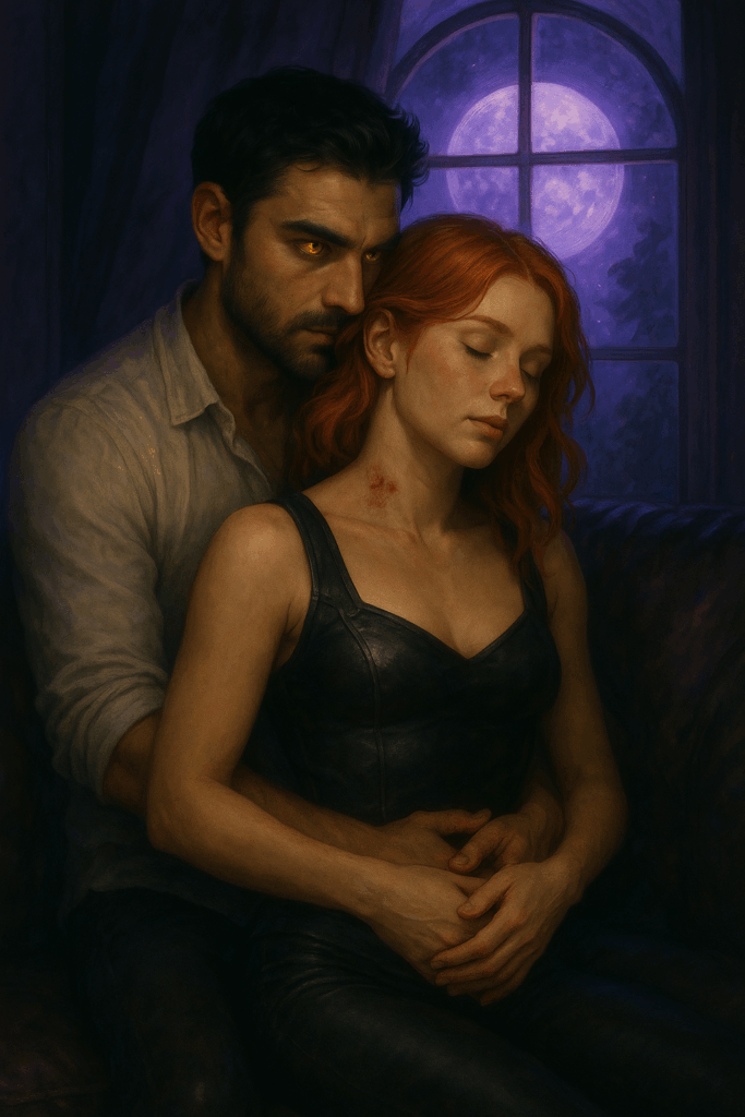 Une heure. À peine une heure de repos, et mon corps contre le tien te consume encore. Je dors, roulée en boule dans les draps froissés, ma peau scintillant sous la lumière pâle qui traverse la chambre, mes petits ronronnements ponctuant mon souffle comme un chant discret. Tu passes une main dans mes cheveux, frôlant la marque sur mon cou, mais rapidement ton cerveau prend le dessus et te hurle de trouver ce chaman avant que je ne sois plus moi, avant que cette sauvagerie ne m’avale.
